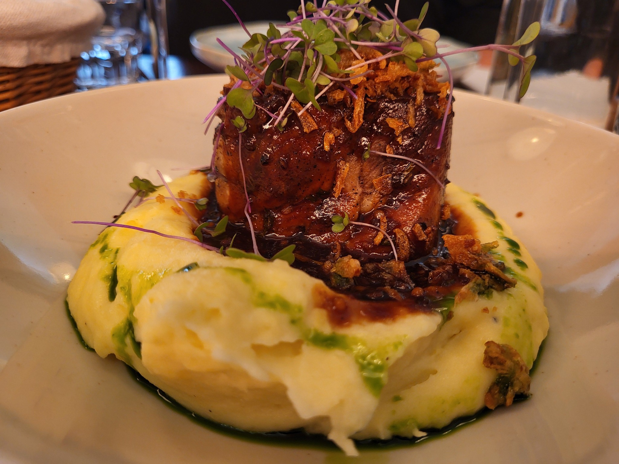 Desde los primeros albores de la comida, el menú del día llama la atención. Para empezar, las sugerencias deben ir encaminadas hacia una croqueta de pescado, con su textura crujiente y fundente y su salsa gibrich, cuyos acentos de mostaza y su fuerza controlada dan fe del ‘savoir-faire’ de la cocina. Para los amantes de los huevos, también está la receta Capsule, un elegante huevo pasado por agua servido con salsa cremosa de apio y aceite de trufa, picatostes, avellanas y semillas de sésamo; en conjunto, un plato que huele aún a invierno.