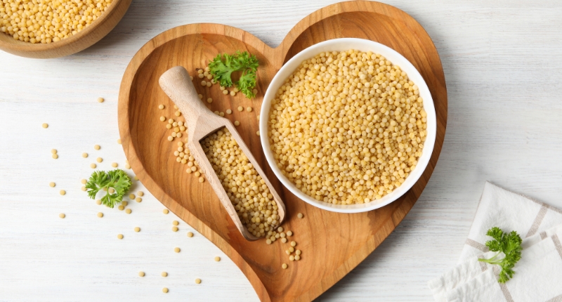 Originario del Magreb, el cuscús se ha colado en las cocinas de muchas partes del mundo, como sustitutivo del arroz. Este alimento se elabora a base de sémola de trigo cocida al vapor, y se utiliza tanto en platos salados como dulces. Es muy versátil: se puede servir como ensalada fría con verduras frescas, hierbas y limón o acompañando guisos de carne y legumbres.
